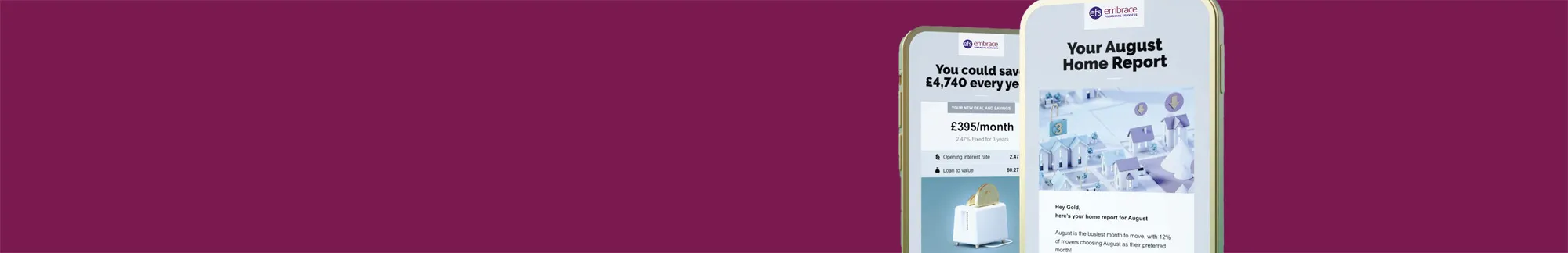 If a better deal becomes available, we will let you know how you can save start saving money on your mortgage with Embrace Financial Services.